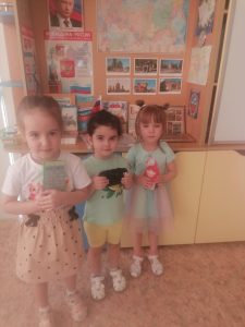 Неделя Краеведения в детском саду, в нашей группе, ознаменовалась не только интересными досугами для ребят, но и сбором новой для них информации, для нашего патриотического уголка: о семье, о детском саде, о нашем городе, Крае.. Активное участие приняли родители наших ребят, которые поделились семейными фотографиями, альбома и, картинками. Ребята с удовольствием их рассматривают. А ещё, наш патриотический уголок пополнился куклой — оберегом Крупеничкой, «серебряной» чеканкой и чудесным конём из рогоза. Ребята с трепетом их рассматривали, гладили. Так мы и учимся любить свою семью, свой город, Край и всю нашу великую страну!