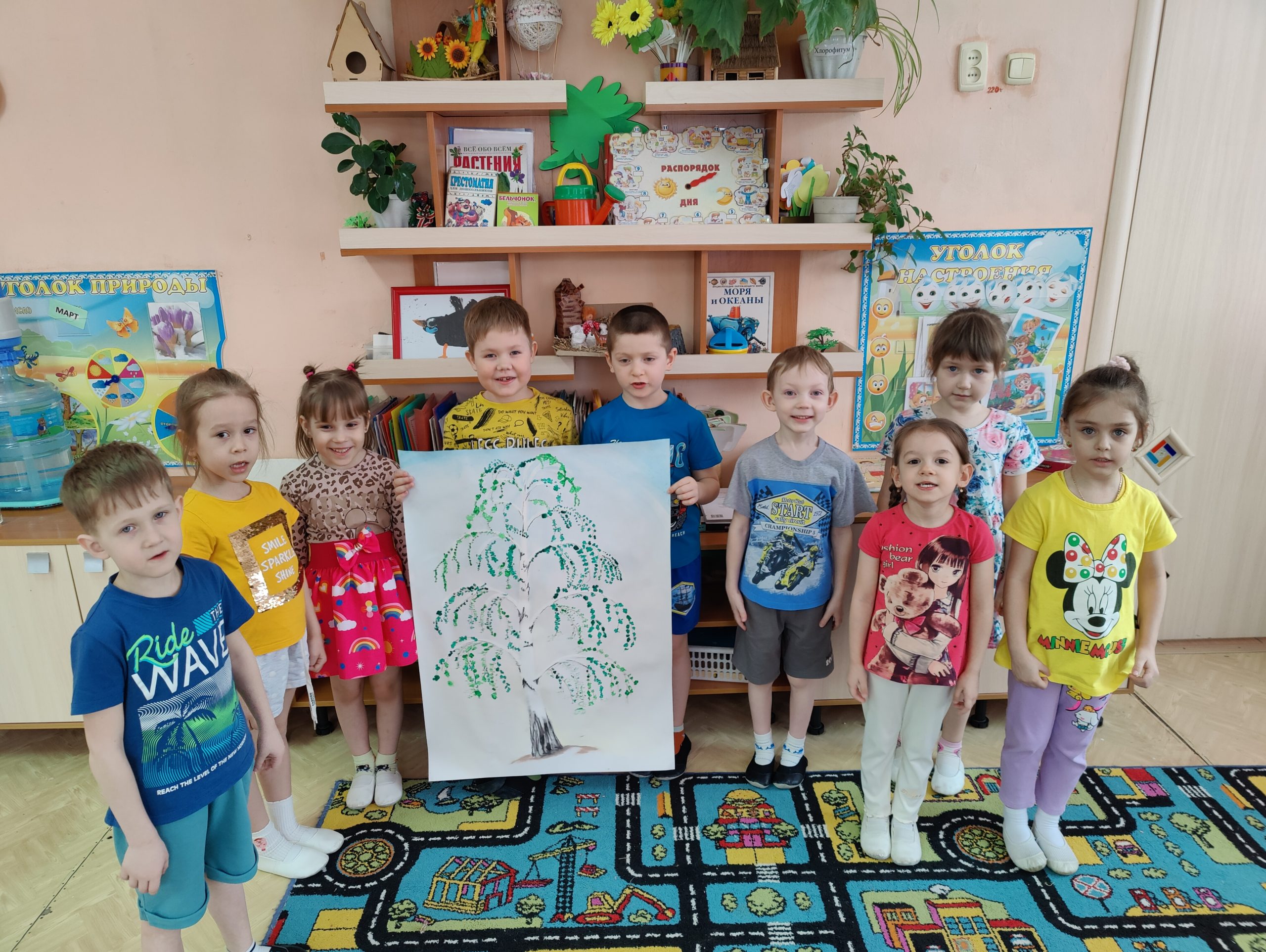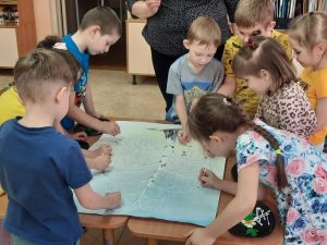 Была проведена большая предварительная работа, где дети познакомились с озёрами и реками Алтайского края, с ленточным бором. Узнали какие животные и птицы водятся в нашем крае. Какие города находится на территории Алтайского края. В ходе занятия ребята описали наш год Барнаул, и одним из качеств нашего города выделили слово «зелёный». Что в нашем городе очень много деревьев и зелёных насаждений. Самое русское дерево это берёза. Самое красивое и стройное. В конце занятия дети приняли участие в коллективной работе и украсили березу листиками. Ребята были очень активны на занятии, правильно отвечали на вопросы и получили большой эмоциональный настрой.