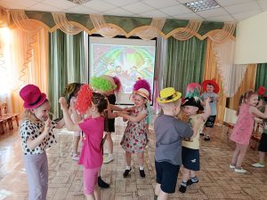 Сегодня 1 апреля в международный день смеха в группах «Малышарики», » Улыбка «, » Умка» прошло необычное музыкальное занятие. Дети превратились в смешных артистов и клоунов. Ребята танцевали, делали весёлую зарядку, пели песни, играли на музыкальных инструментах, шутили. В зале звучала зажигательная музыка и детский смех. Такие занятия создают положительный эмоциональный настрой, развивают коммуникативные навыки, чувство юмора, внимание и память, доставляют детям радость.