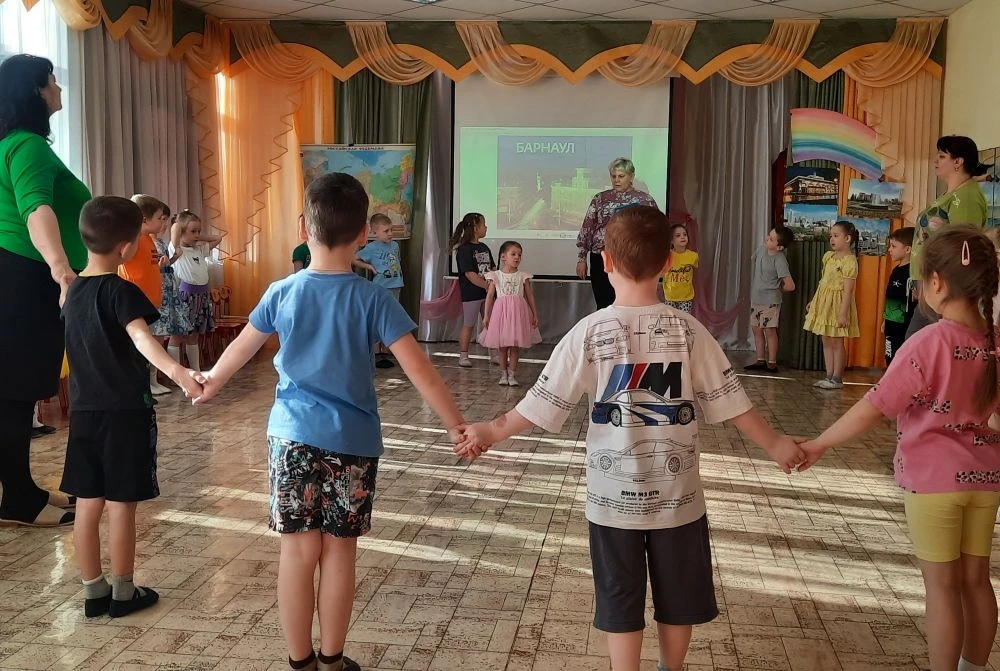 В группе «Забава» была организована большая работа с детьми по краеведению. Итогом работы с детьми было проведено развлечение для детей «Мой любимый край», на котором были обобщены знания об Алтайском крае и г. Барнауле. Дети с удовольствием отвечали на вопросы, рассказывали стихотворения, пели, танцевали и играли. И, конечно же, получили положительные эмоции.